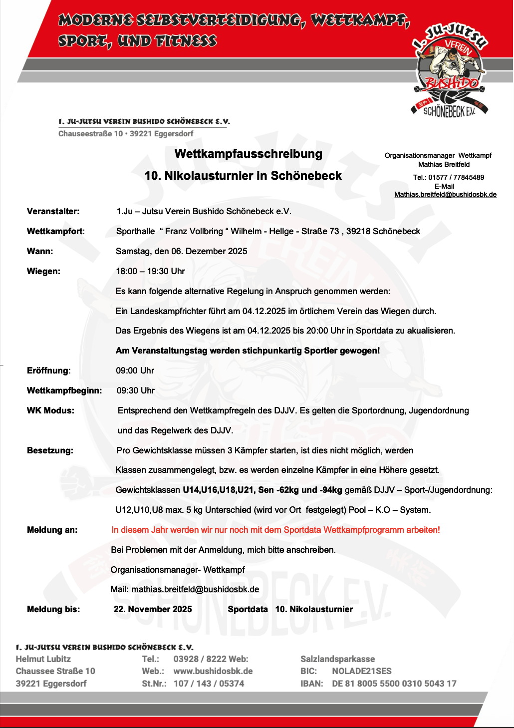 Wettkampfausschreibung 10. Nikolausturnier SBK 2025