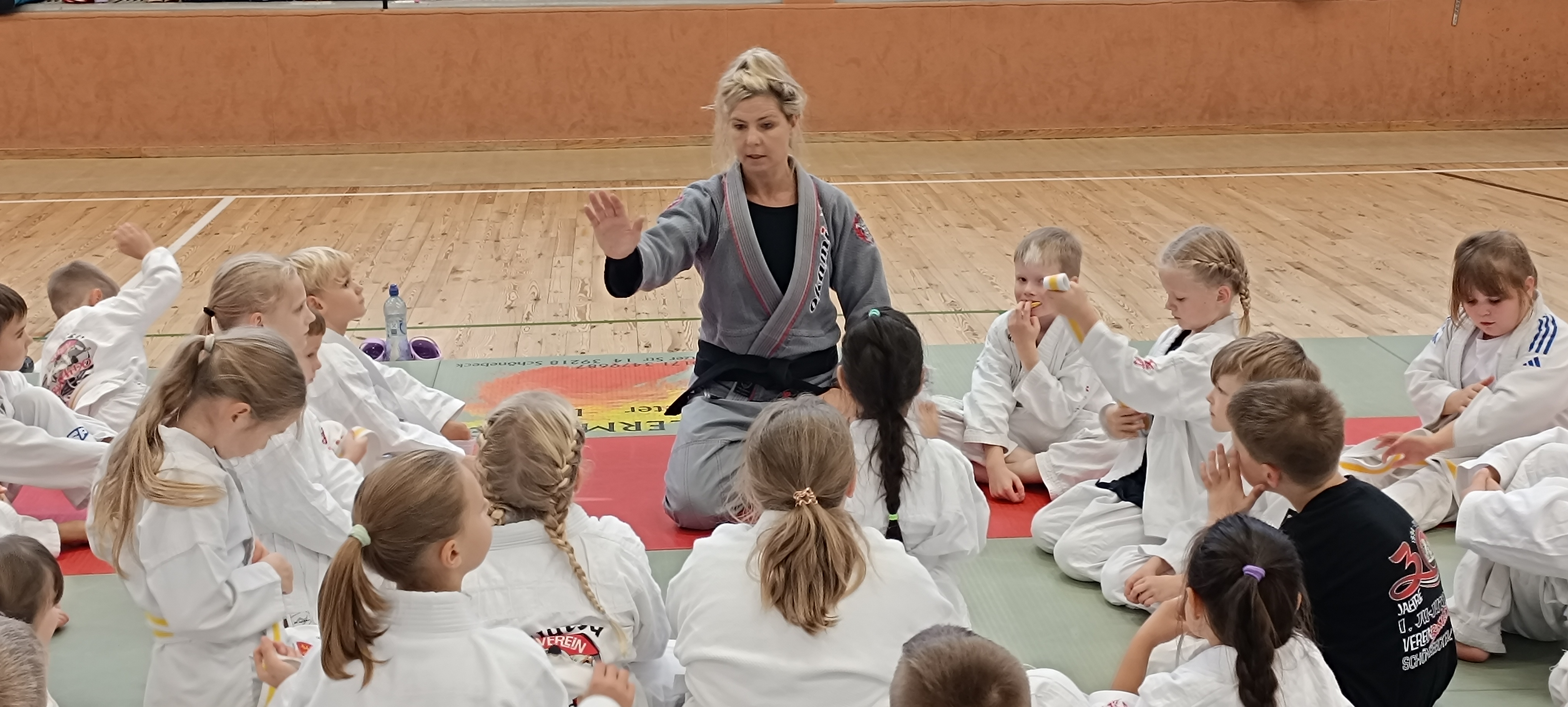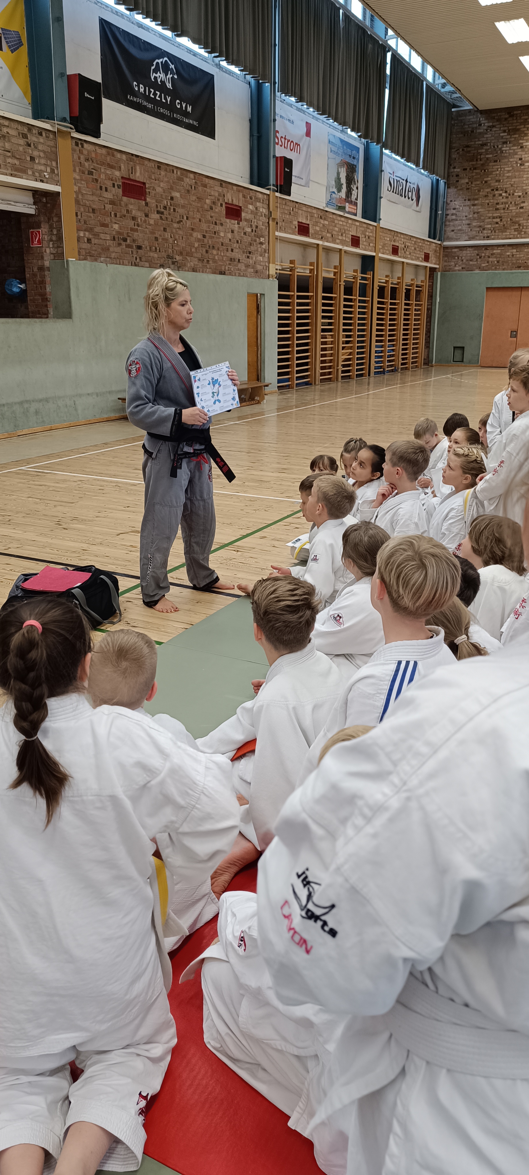 Die Kinder hatten in den drei Stunden Training sehr viel Spaß und lernten neue Techniken und Utensilien wie Schaumstoffstöcke kennen. Anja Linke schulte die Kinder im Selbstbewusstsein und Distanzverhalten. Sie lernten bei den Trainern Griff lösen sowie Bewegungslehre. Das Credo des Tages lautete: „Starke Kinder schützen sich!“
